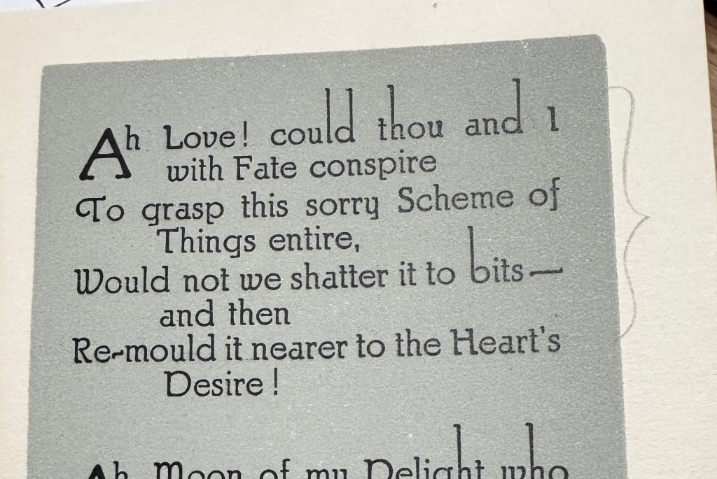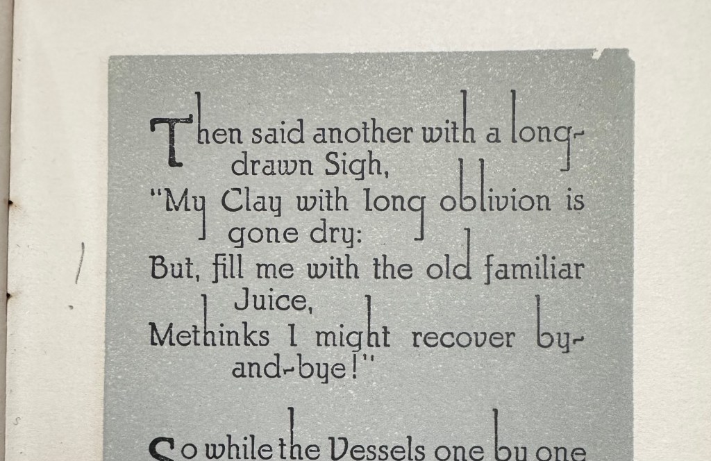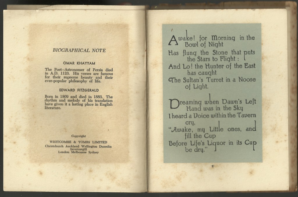 The first edition appeared anonymously in 1859 as a small pamphlet printed at FitzGerald’s expense and published by Bernard Quaritch. It attracted almost no attention and sold so poorly that Quaritch eventually reduced the remaining copies to a penny each and placed them in a bargain box outside his shop.