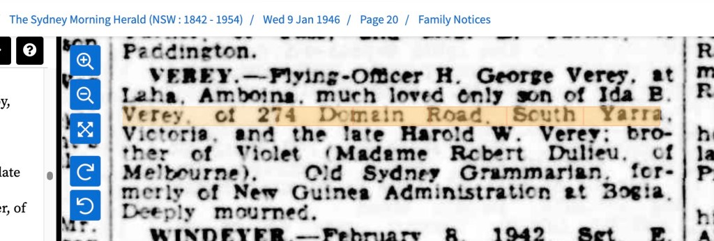 When Charlie and Doss (yes Doss) were allegedly married, the addresses they listed as their normal residences were both conveniently nominated as 274 Domain Road, South Yarra!