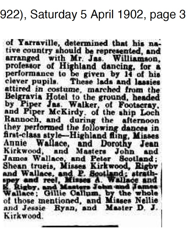 Dorothy Jean Robertson (nee Kirkwood) is the Scottish Highland Dancer associated with J C Williamson when JCW was known as “Professor” and ran a small dance academy in Footscray, with the Kirkwood’s as clients and friends.