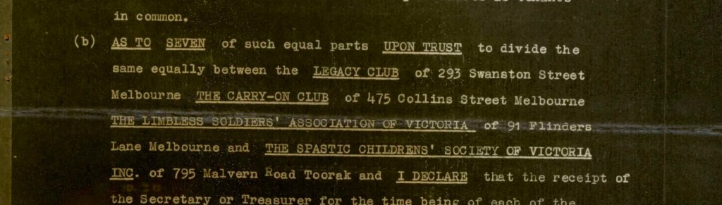 Was Alex a participant and member in the “Limbless Soldiers’ Association of Victoria” for Doss to leave them a bequest? Was he a research subject of the “Pain in Phantom Limbs” project with Dr Barbour and his Associates?