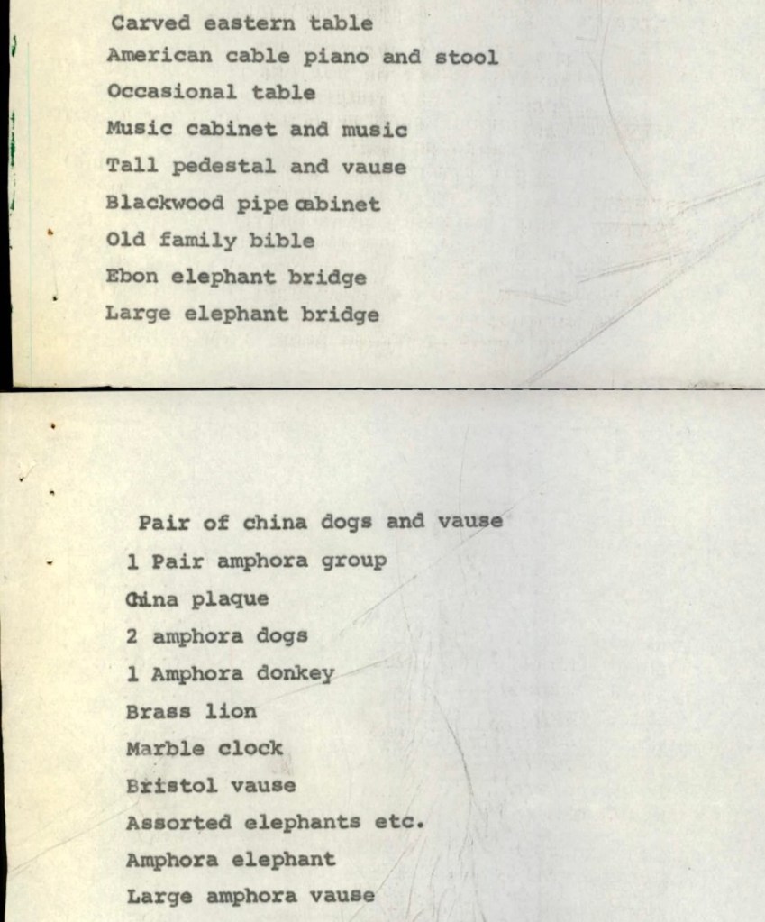 Of interest also is the list of assets listed as her possessions at Probate!